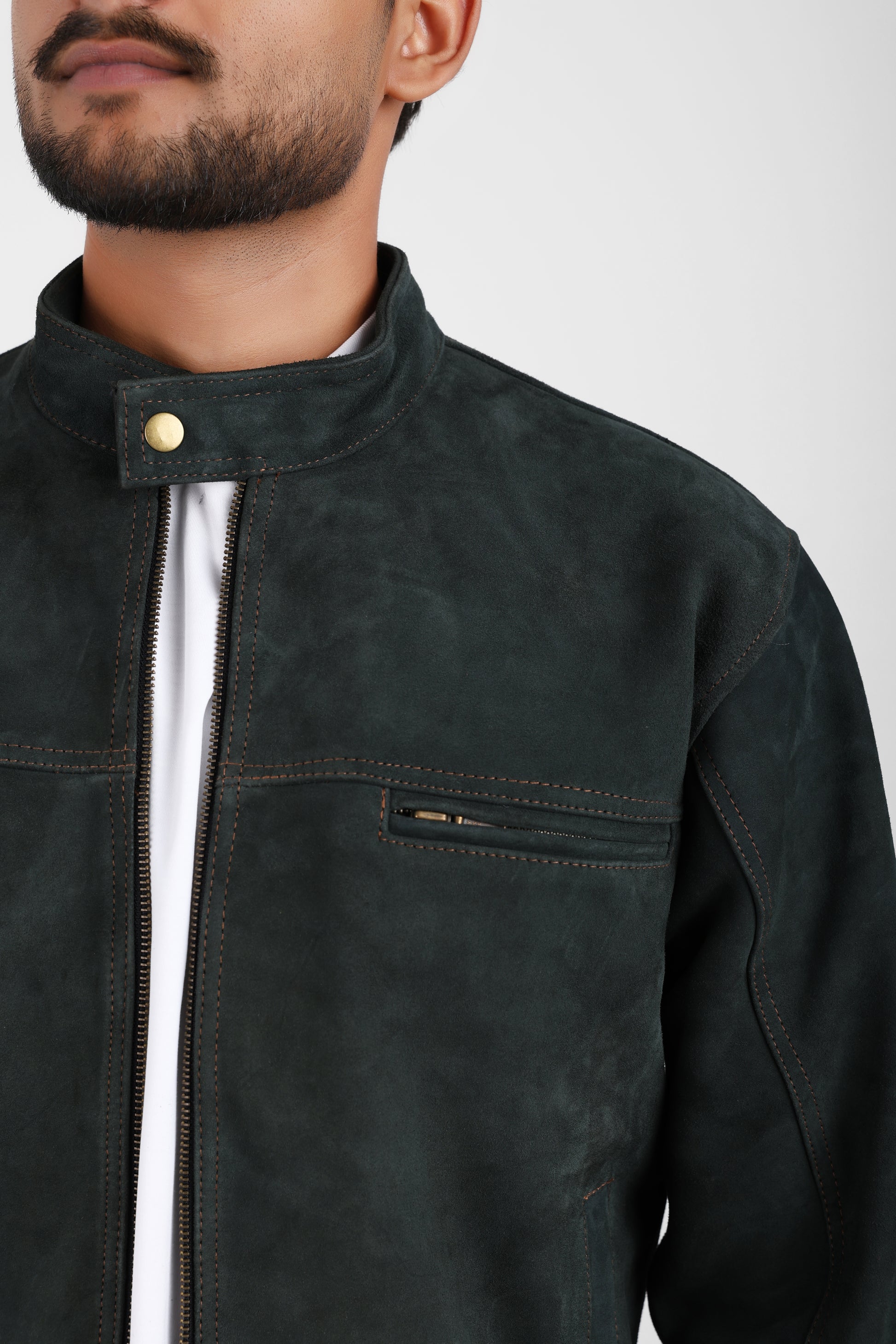 Classic Suede Leather Jacket – Forest Green